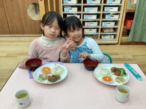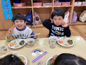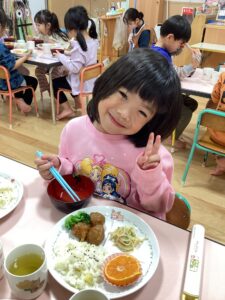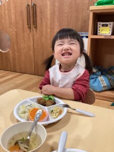 お誕生会メニューは秋ならではのお芋のご飯やミートボールを満喫しました🍠
